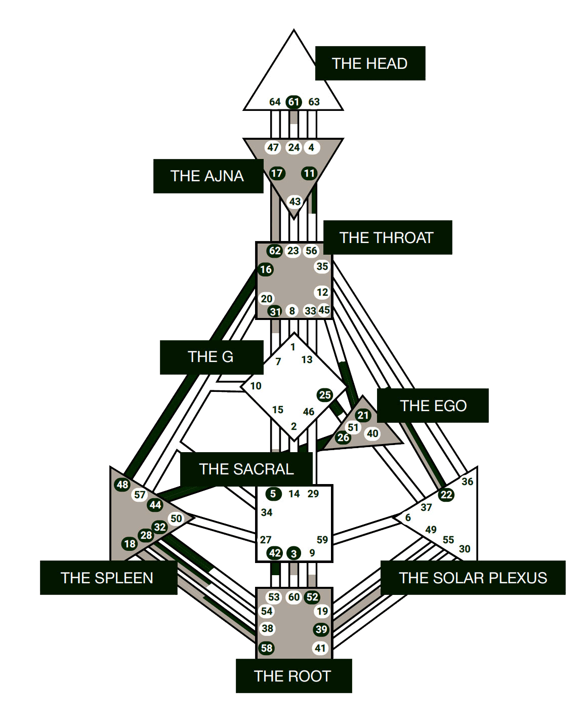 The chart is made up of nine energy centers (an evolution of the traditional chakra system) with each carrying a different type of energy in the body. The energy of these various centers are ‘activated’ within each of us in our own unique way based on the definition of our chart. To learn the way our energy operates sets us up to create greater ease in our relationship to self, our connections with others and on the path toward our goals and desires.